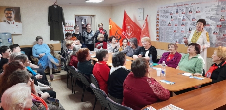 В актовом зале Курганского обкома КПРФ состоялся торжественный приём, посвящённый Международному женскому дню 8 Марта. На приём были приглашены женщины актива обкома, горкома, ВЖС «Надежда России», волонтёрских групп из школ города и Звериноголовского района.