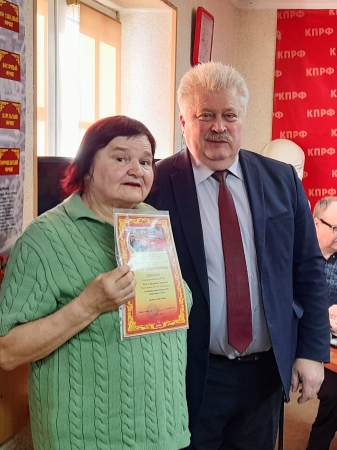 С праздничным поздравлением к приглашённым женщинам обратился первый секретарь Курганского обкома, член ЦК КПРФ Виктор Зырянов. Он передал горячий привет и поздравления от Председателя ЦК Геннадия Зюганова, вручил самым активным благодарственные письма за участие в волонтёрской работе по оказанию помощи фронту и патриотическом воспитании подрастающего поколения.