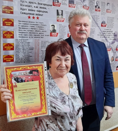 Вручение благодарностей, уже от Председателя ВЖС «Надежда России» Нины Останиной, продолжила сопредседатель Курганского отделения женсоюза Надежда Деткова.