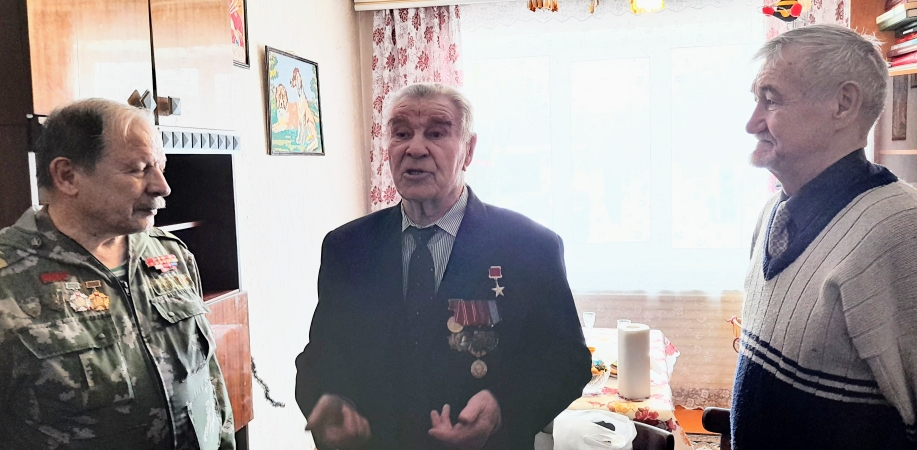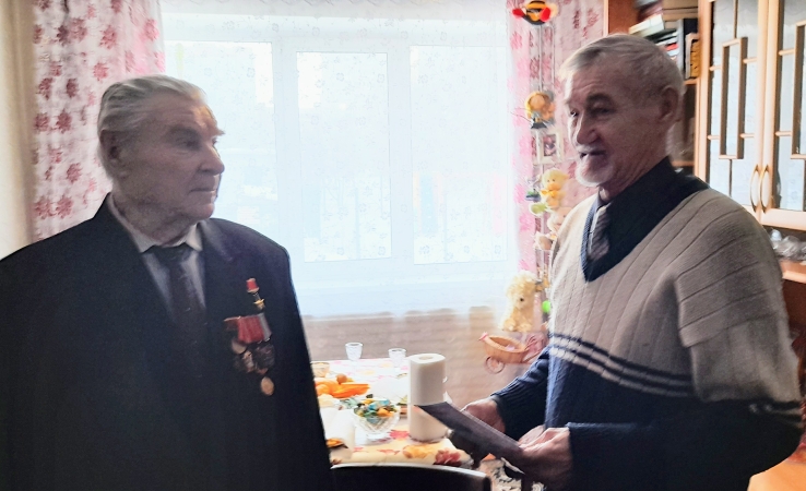 Делегация Курганского обкома, горкома и комсомольцев, вместе с известным историком Сергеем Карпуком и ВЖС «Надежда России» поздравили почётного ветерана.